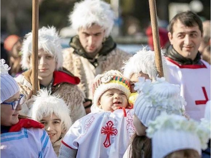 Как и во всем православном мире, календарный праздничный год начинается с Рождества. День 7 января называется по-грузински «Шоба — Ахали цели» («Рождество и Новый год»). В этот день все грузины стараются принять участие в крестном ходе. Особенно масштабно это действие проходит в Грузии, где идущие в колонне, как правило, надевают белые одежды или овечьи шкуры белого цвета, изображая таким образом пастухов, возвещающих о рождении Христа. Впереди шествия идут дети как олицетворение ангелов. Во время движения участниками поется особое трехголосное песнопение «алило» (от общехристианского «аллилуйя»). Часто сам крестный ход называют «Алило». После окончания торжественного молебна певцы останавливаются перед воротами домов и поют, за что хозяева выносят им различные сладости, одежду и пожертвования. Кульминацией сего шествия является передача собранного пожертвования нуждающимся.