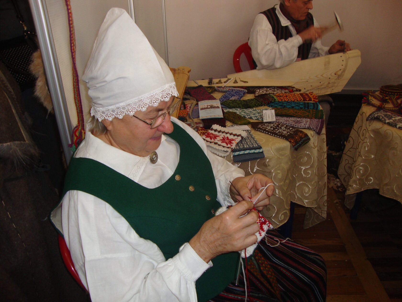 Специфика сохраняется и в вязаных частях одежды: носках (лат. — zekes), чулках (лат. — zekes), варежках (лат. — duraini). Основное их отличие состоит в стилизованном цветочном орнаменте. Латышские носки и варежки отличаются пестрой цветовой гаммой, где преобладают красные, желтые, коричневые и черные цвета. Рукавицы, перчатки и носки играли важную роль в обрядовой культуре. Вязанию их уделяли большое время девушки, т. к. они составляли значительную часть свадебных подарков. Особый магический смысл имели не только цвет, но и орнамент. Латышская невеста дарила своему суженому черные рукавицы, на тыльной стороне которых красовалось изображение красного сердца и цветов. Особенно нарядно выглядели ажурные белые перчатки и носки с изящным красно- оранжевым орнаментом. И у латышей и у эстонцев пожилые женщины иногда вяжут юбки (лат. — svarki), пуловеры (лат. — pulovers), платки (лат. — lakats) и т. д.