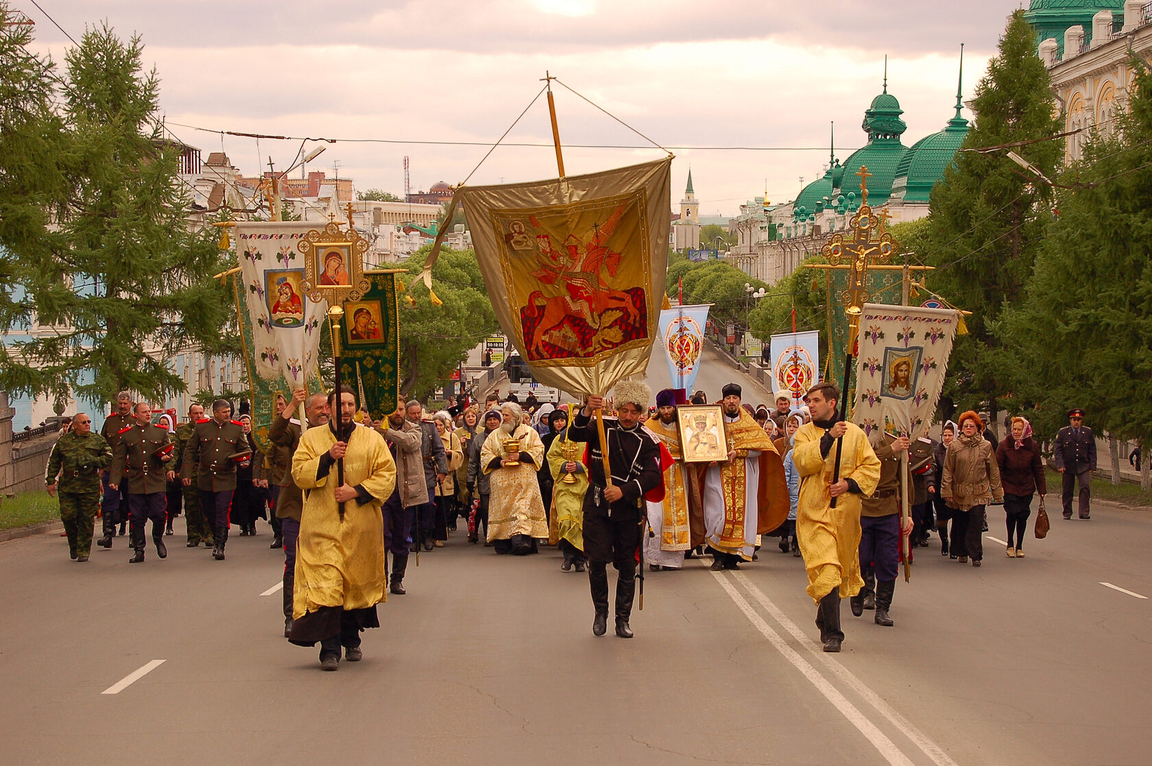 По вероисповеданию сибирское казачество в большинстве своем являлось православным (в том числе — старообрядческим), хотя и встречались представители других конфессий. Обычно в центре казачьей станицы располагался православный храм, в котором хранились боевые знамена. Любое дело у казаков ежедневно начиналось и заканчивалось молитвой, в особо важных случаях служили молебен. Молитва и крест являлись первыми оберегами от всяких напастей и нечистой силы.